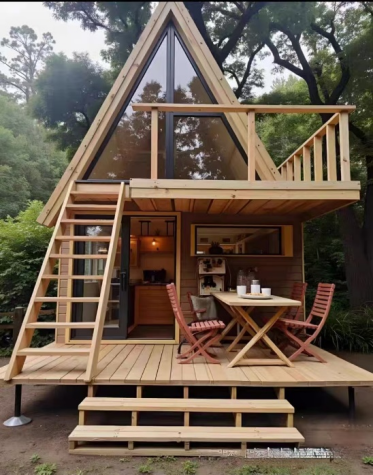 Базирано на моделите с балкон и описанието за „Double-layer board“. По-просторен вариант, който добавя външно пространство към горния етаж за сутрешно кафе сред природата.