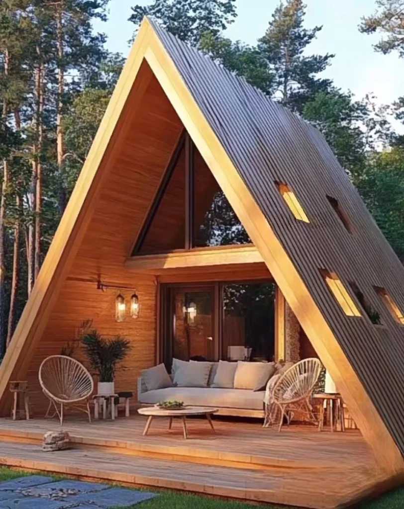 Просторни A-frame къщи с високо таванско помещение, което добавя обем и допълнително пространство.